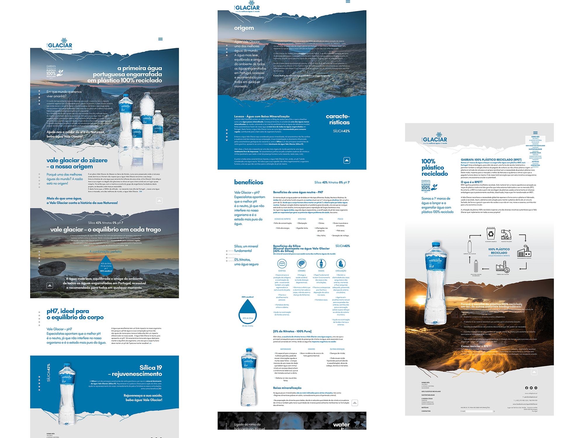 O projecto da água Glaciar era há muito ambicionado e surgiu de uma forma natural e quase pessoal. Um grupo de engenheiros com uma vasta experiência na área do engarrafamento de águas sabia que um dos melhores tesouros deste mercado estava guardado na Serra da Estrela, no Vale Glaciar do Zêzere. Foi, então, que decidiram arriscar e tentar descobrir como poderiam trazer para o mercado aquela que sabiam ser uma das melhores águas do mundo. Num percurso traçado pela mestria e experiência destes engenheiros e com alguma sorte descobriram a nascente por onde brota de forma artesiana esta dádiva da natureza, a água Glaciar. A paixão pela Natureza e a mestria destes engenheiros trouxeram para o mercado uma das melhores águas do mundo, a água Glaciar. Mais do que uma água, este projeto é também paixão engarrafada em cada garrafa, partilhada por este grupo de engenheiros e por todas as pessoas que fazem este projecto acontecer!