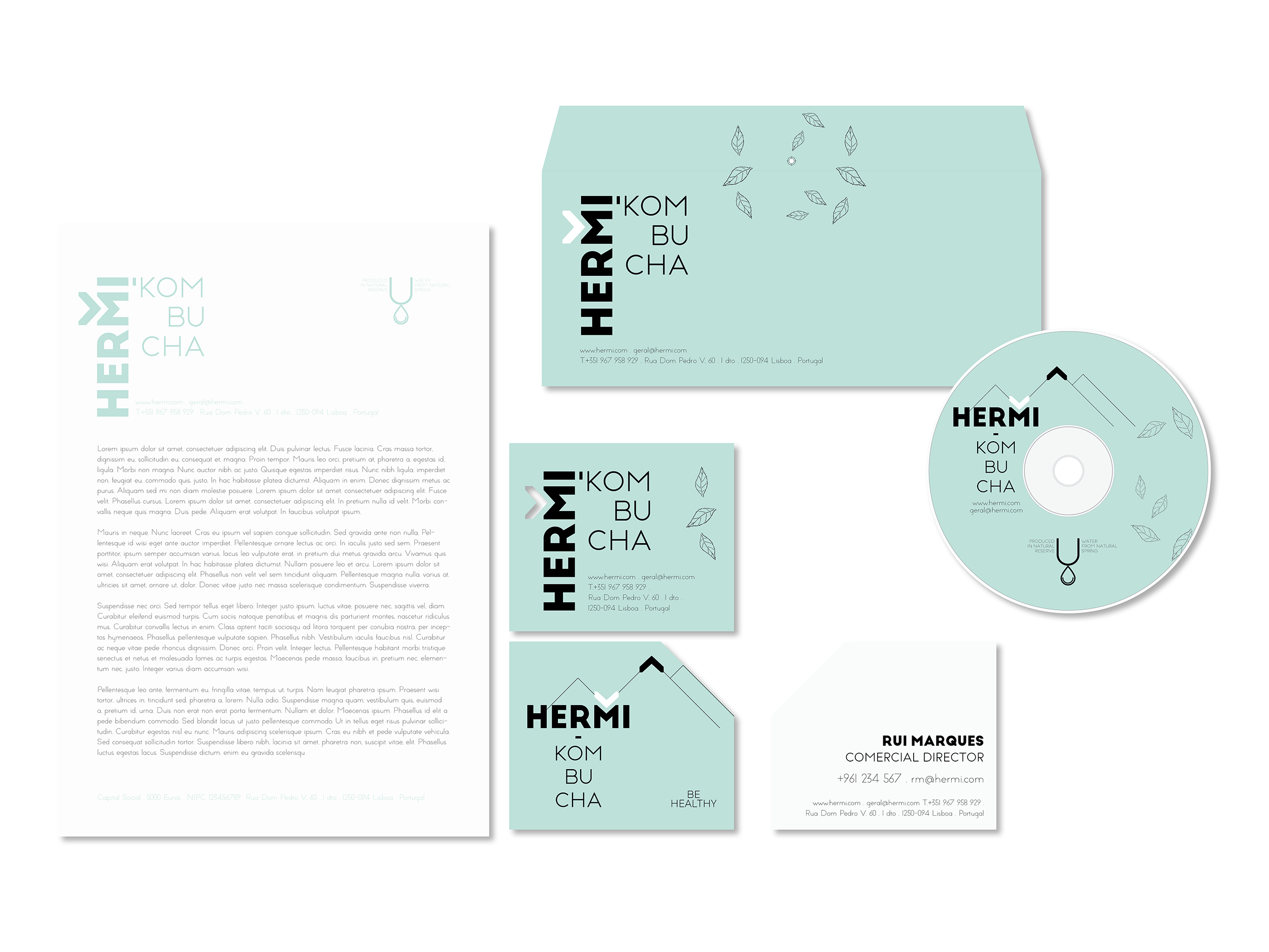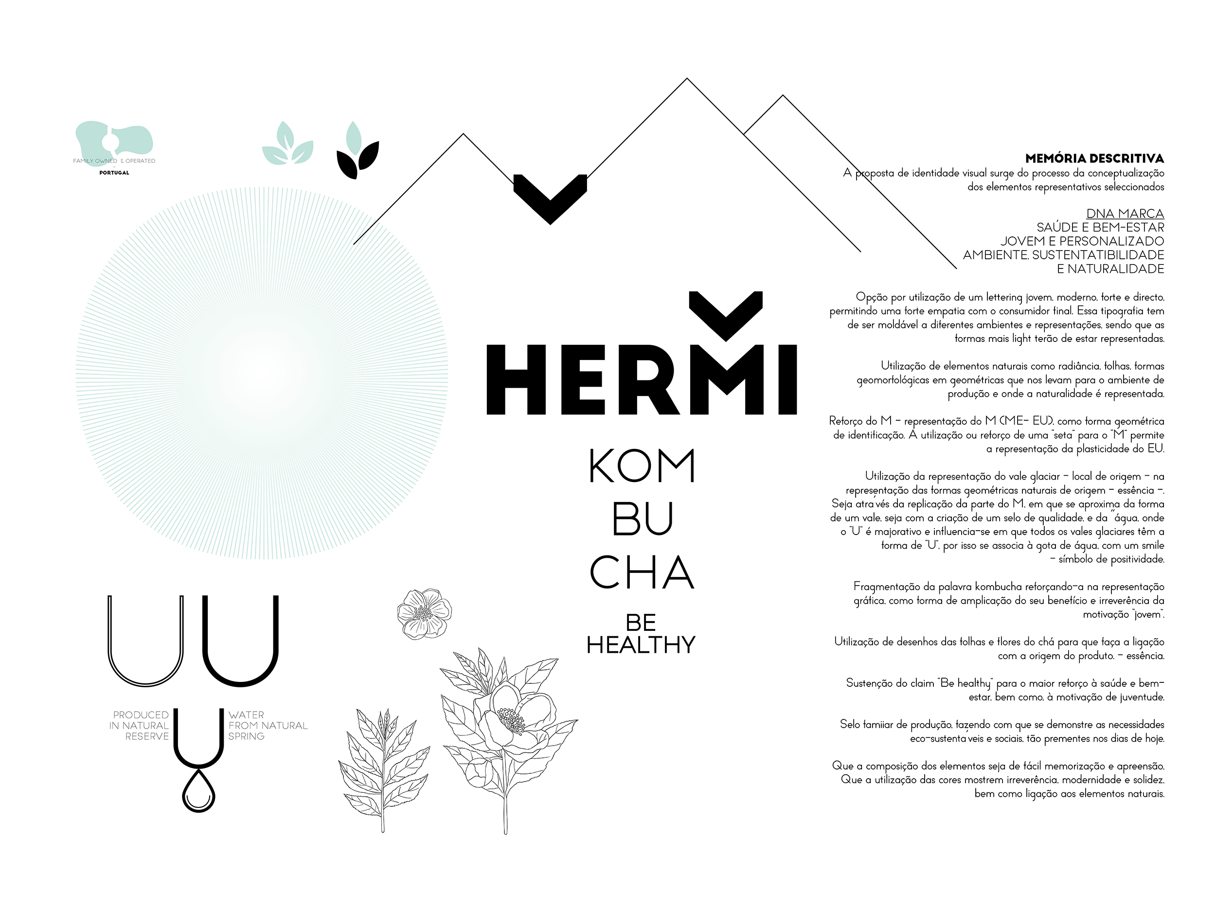 Criação da identidade e imagem institucional Hermi Kombucha e suas aplicações criativas. A campanha foi definida e a comunicação está a ser desenvolvida.
