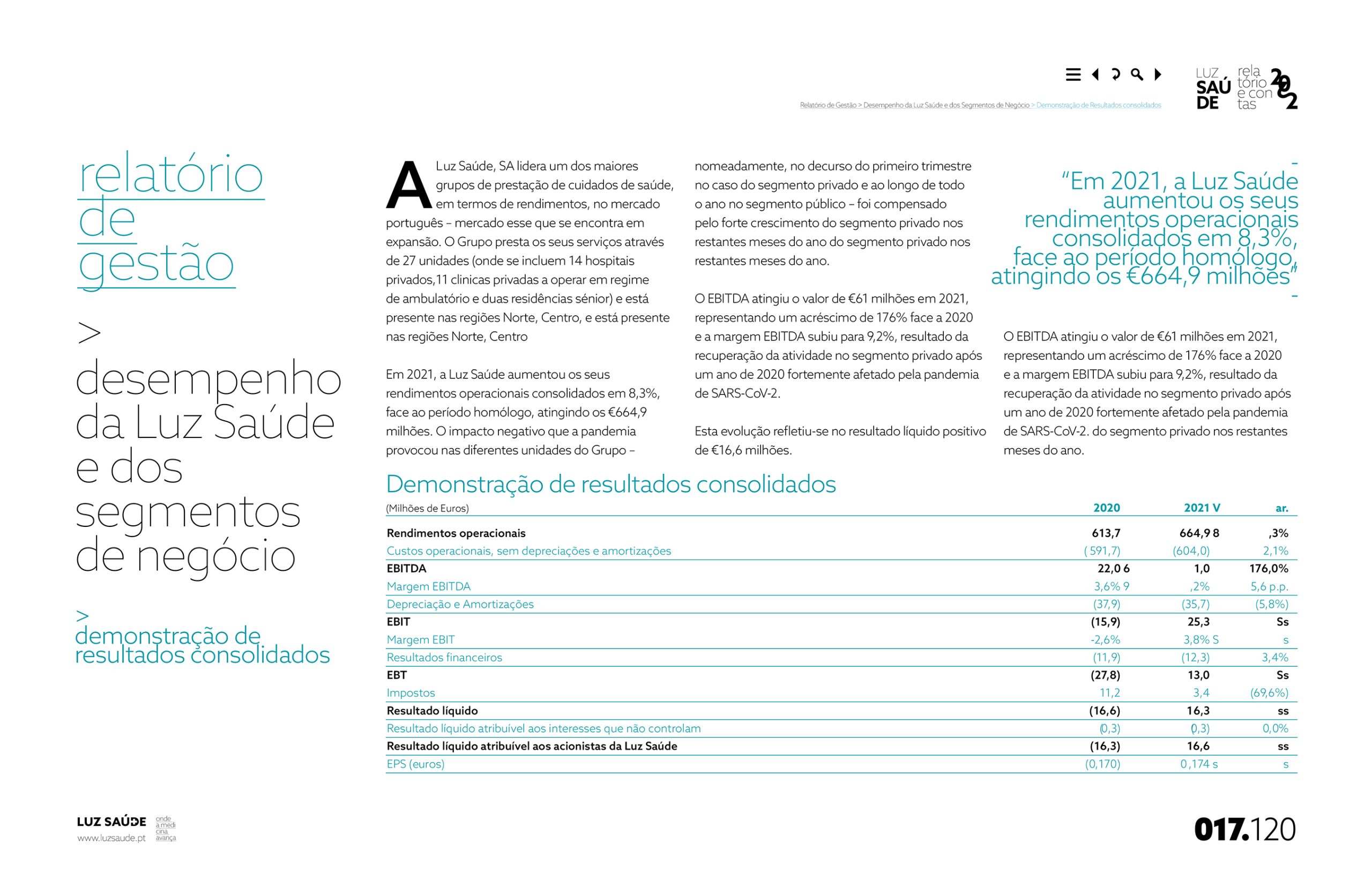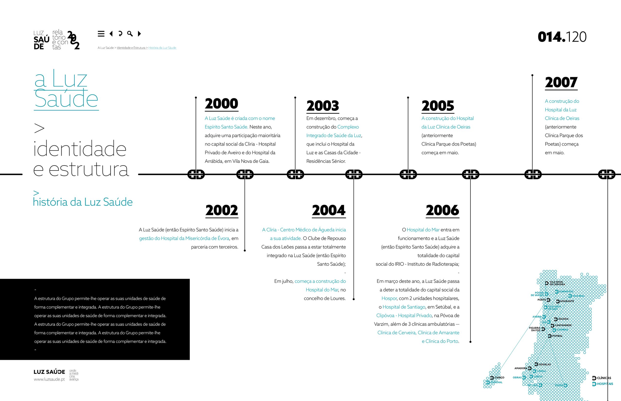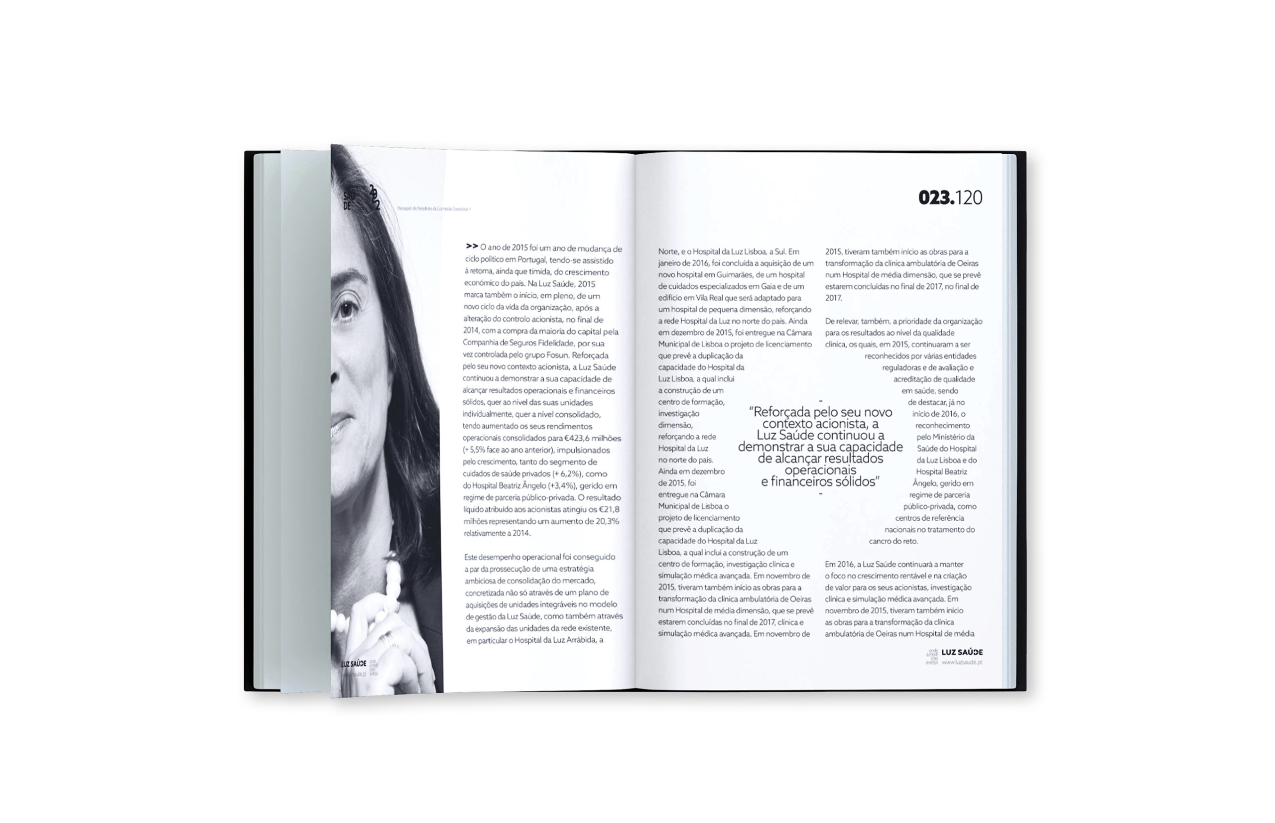 Luz Saúde – Relatório e contas 2022 (em desenvolvimento)Criação de layout, paginação, programação e artes-finais da publicação impressa e online da Luz Sáude – Relatório e contas 2022. (Em desenvolvimento) >BRANDING >COMMUNICATION >EDITORIAL / 2023