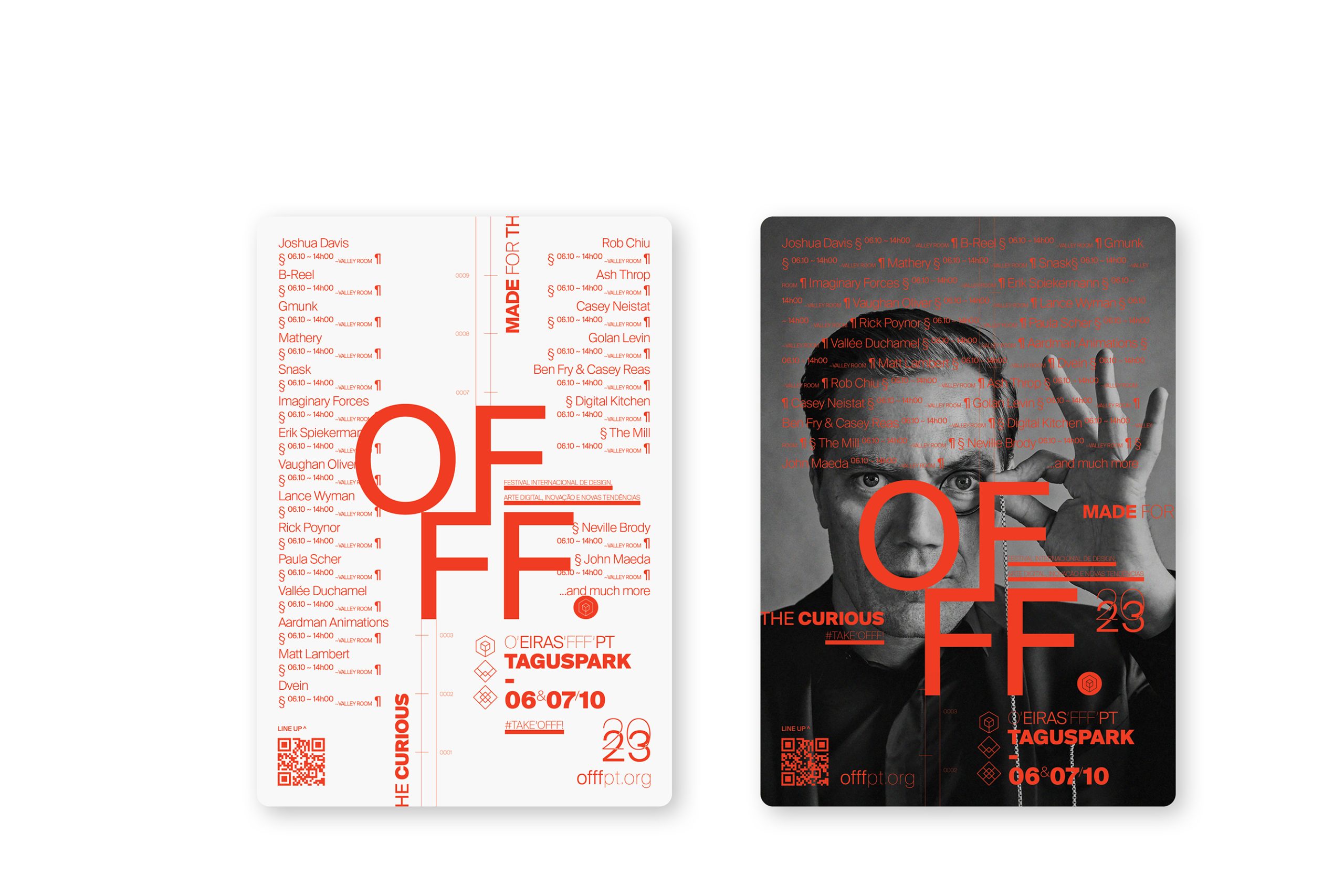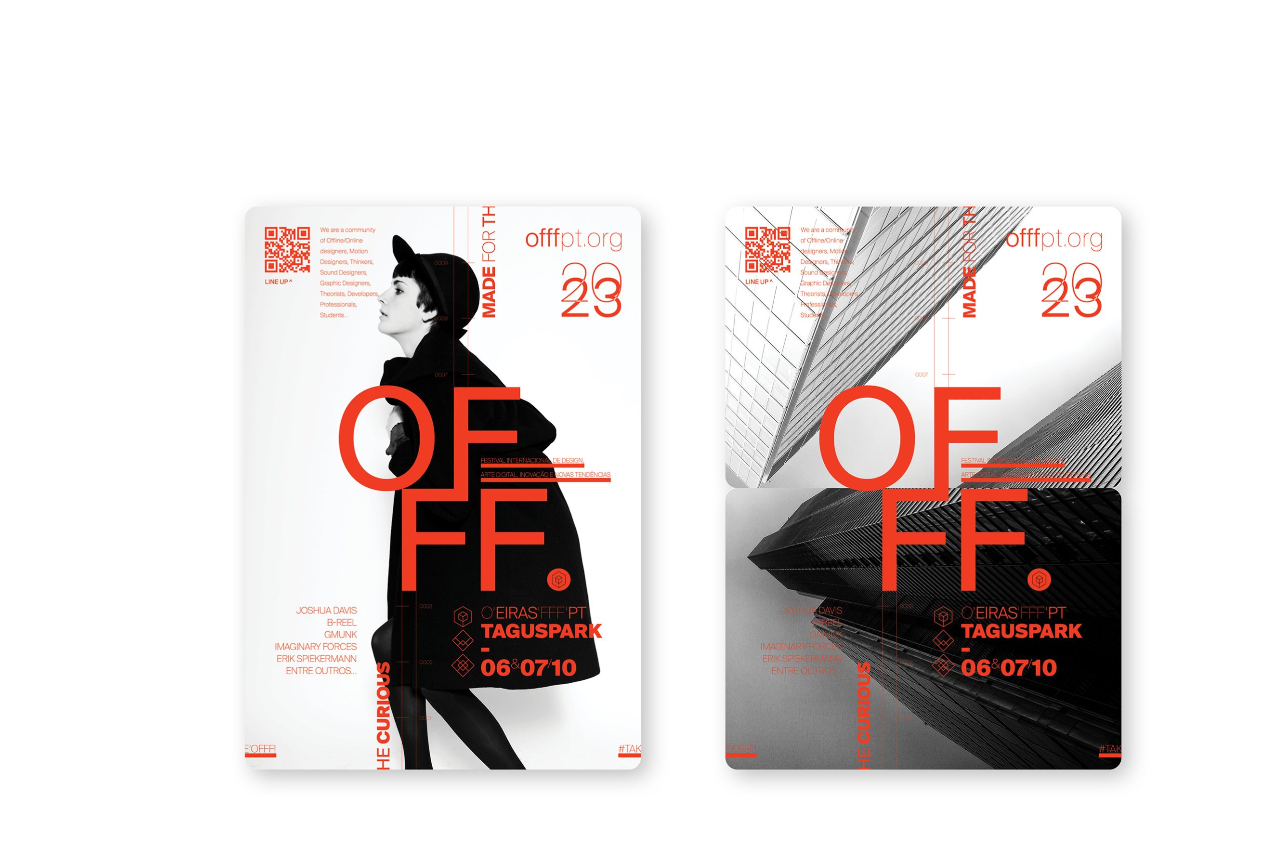 O OFFF é uma comunidade que convida todos aqueles que estão ansiosos para aprender, participar e inspirar-se numa jornada de três dias de conferências, workshops, actividades e performances. É uma combinação de designers offline/online, designers de movimento, pensadores, designers de som, designers gráficos, teóricos, criativos, profissionais, estudantes, cineastas… Definições à parte, o OFFF é feito para os curiosos. Nos últimos 19 anos, o OFFF tornou-se a maior vitrine e janela de criatividade digital contemporânea. OFFF é um estado de espírito que excede o formato de Festival e Conferência, misturando conceito através do seu conteúdo destacado.